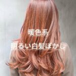【暖色系】明るい白髪ぼかしは暖色系でも出来ます🔸ベースの白髪ぼかしと赤味を補色を混ぜているので透明感もそのまま!@二子…