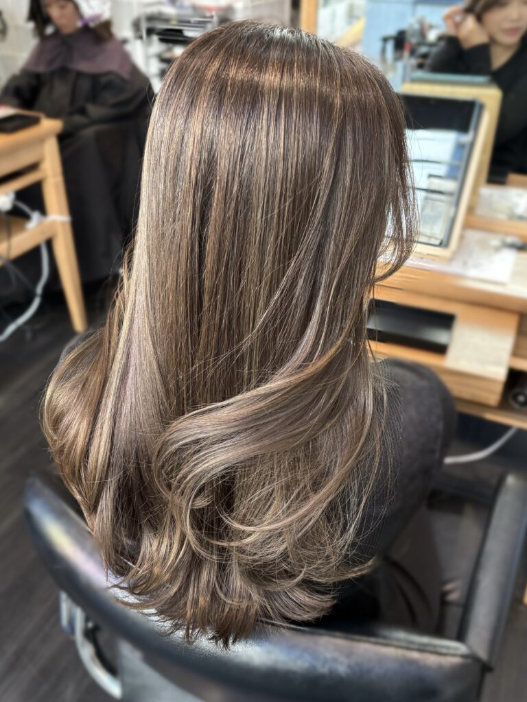 私のハイライトは周期とブリーチの抜け具合 をお客様の髪に合わせて、色落ちを考えた配合にしています